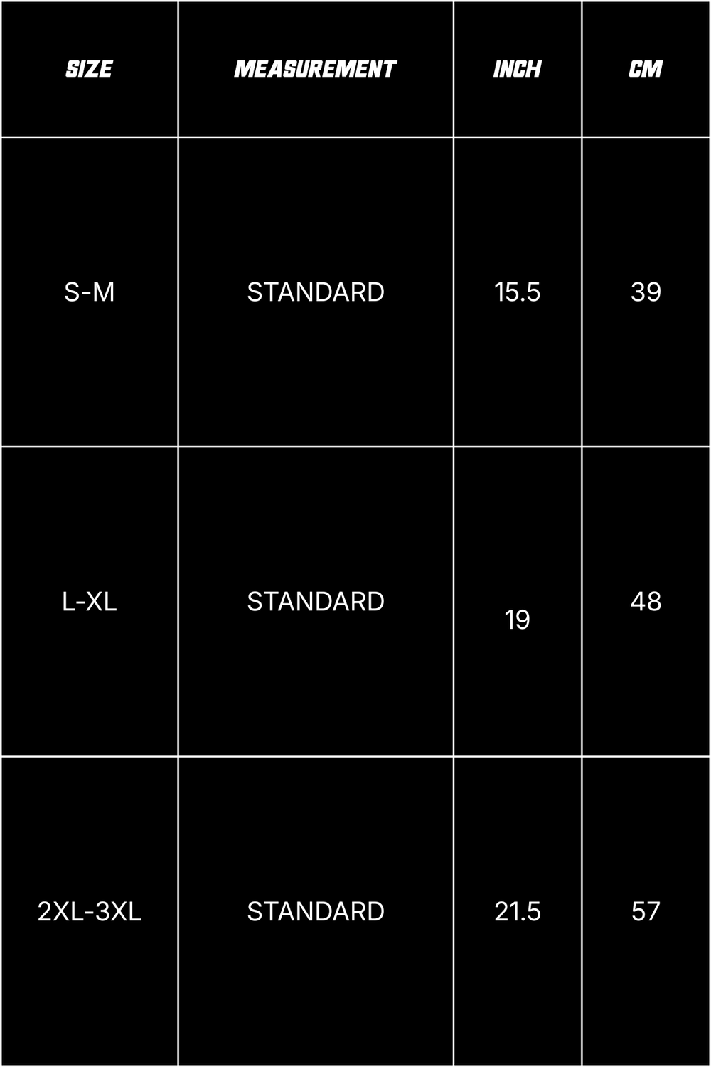 ARM & LEG BAND SIZE GUIDES