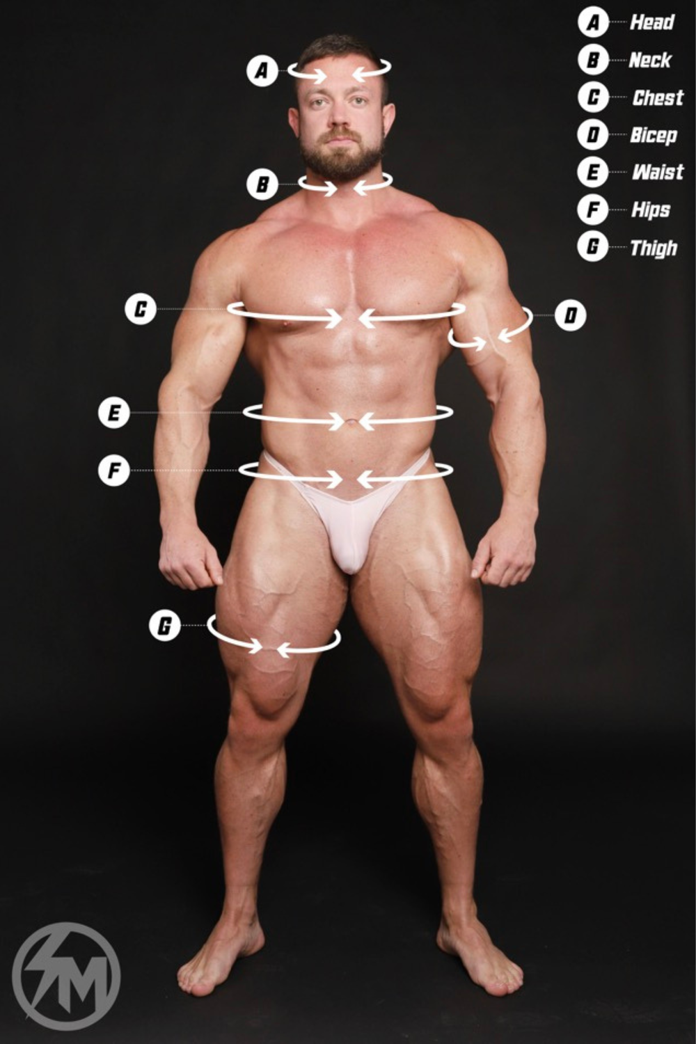 G - To measure your thighs, take a flexible measuring tape and wrap it around the widest part of your thigh, usually mid-way between your knee and crotch.